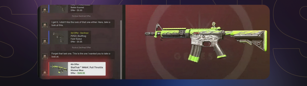 Another piece of the puzzle is the Armory Pass system. New cases like the Fever Case are becoming pass-exclusive rather than random drops. This matters because players can obtain the terminal either through the Weekly Drop system by actively playing or by purchasing it from other users on the Steam Marketplace, and once acquired, the terminal must be unsealed in the inventory, triggering the appearance of the “Arms Dealer,” who offers up to five different skin deals from the Genesis collection, with each deal coming with a set price, and players can choose to buy or decline the offer to see the next one; however, if all five offers are declined, the terminal expires and no skin is awarded.